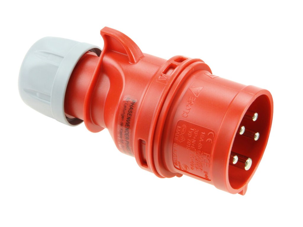 vidlice 5-pólová, 32A / 380V, krytí IP 44, s měničem fáze, dlouhý vývod
